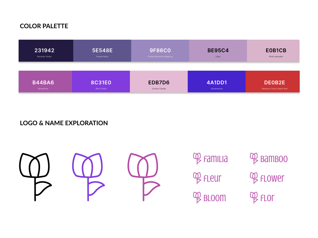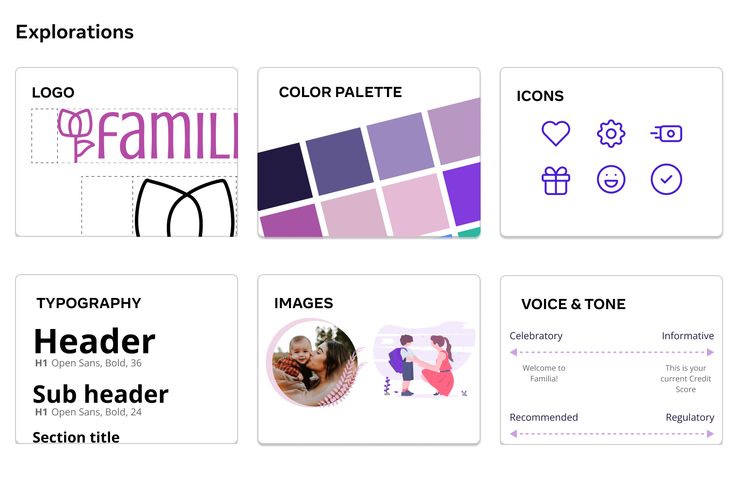 In order to start testing if the solution areas we wanted to focus were accurate we created a brand name (which is what gives this project it’s name). Through brand awareness and card sorting exercises the team and I settled on the name: “Familia”.